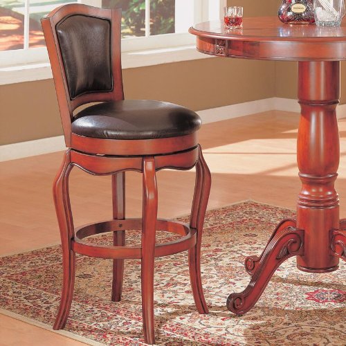Coaster Harrison 29 Inch Swivel Faux Leather Bar Stool in Warm Cherry Finish Review