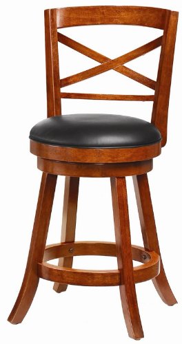 Add functional and homey seating in your home bar or the gathering area in your home. This smart looking bar stool features a swivel capability with a gorgeous light cherry finish, a support and foot rest ring, and an upholstered plush seat with wood seat back design. Create sophisticated and beautiful seating options for your home with this swivel bar stool.This item will make a great addition to your home. This item is usually in stock and ships at no additional charge,brought to you by Dimensions:Bar Stools 24 Swivel Upholstered Seat (Coaster 101939) 34x20x10"Available at Amazon Check Price Now!
