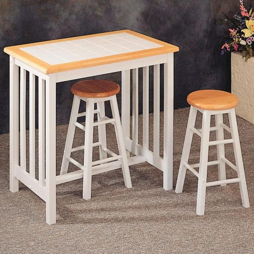 - Natural White Tile Top Breakfast Bar Table Stool Set